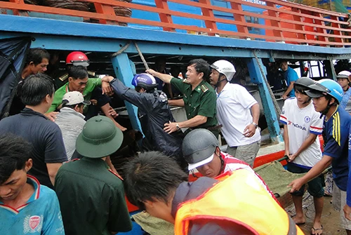 Tàu của Hải đoàn BP28 cập cảng để chuyển các ngư dân bị nạn đi cấp cứu