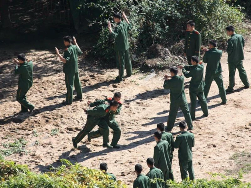 Binh lính Trung Quốc tập luyện tại thị trấn biên giới Đan Đông, đối diện với thị trấn Sinuiju của Triều Tiên vào ngày 20-10-2016. Ảnh: KOREA TIMES