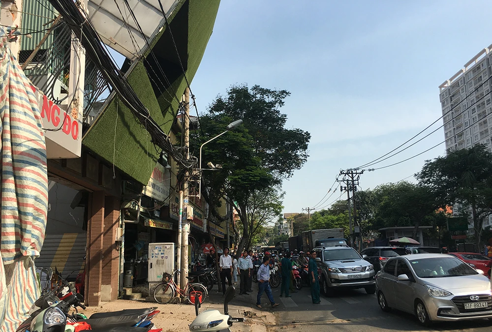 Do sự cố xảy ra vào giờ cao điểm khiến giao thông qua khu vực gặp nhiều khó khăn.
