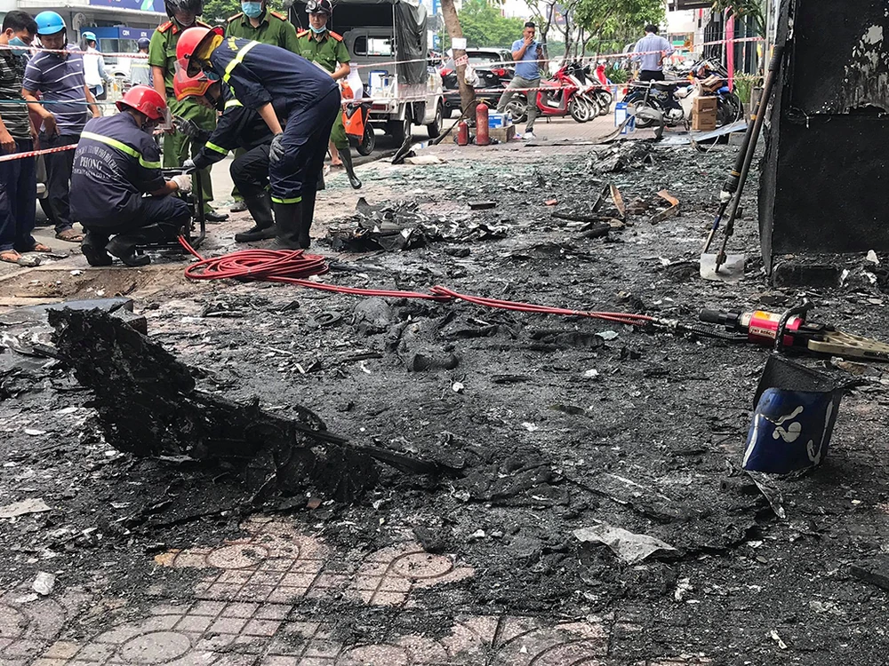 Trưa 24-9, Công an quận Gò Vấp (TP.HCM) phong tỏa, khám nghiệm hiện trường vụ hỏa hoạn xảy ra tại dãy nhà trên đường Nguyễn Oanh (phường 7, quận Gò Vấp).