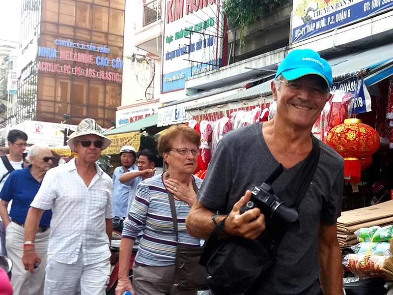 Khách du lịch quốc tế tham quan chợ Bình Tây, TP.HCM. Ảnh: HTD