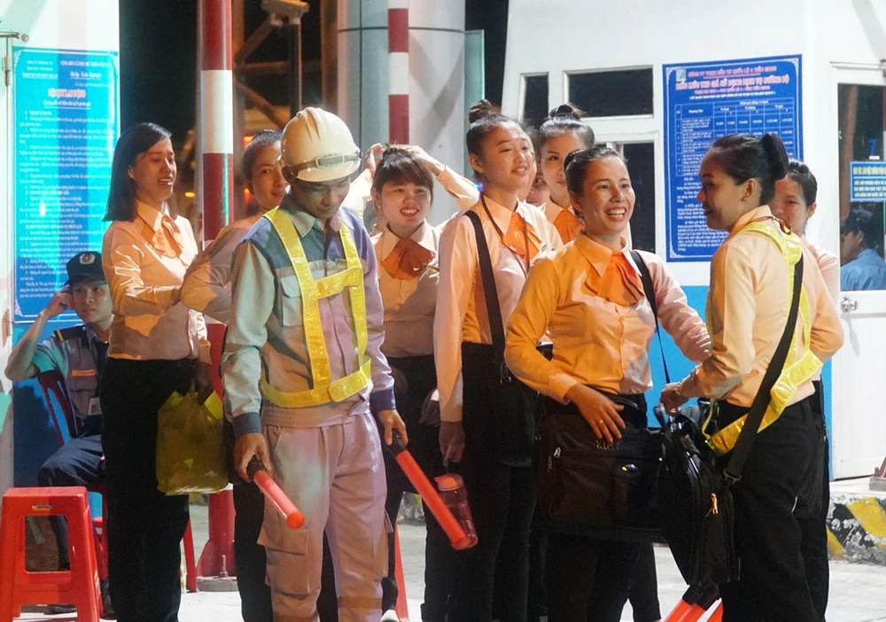 Trong lúc đó, các nhân viên làm việc tại BOT Cai Lậy vẫn vui vẻ nói chuyện trong khi chờ giao ca. Ảnh: QUỐC VŨ