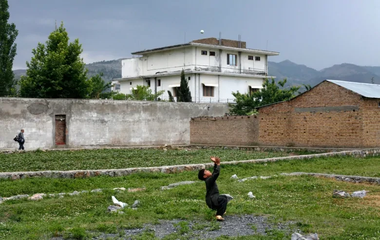 Một cậu bé chơi đùa trước dinh cơ của Osama bin Laden ở Abbottabad, Pakistan ngày 5-5-2011, vài ngày sau khi trùm khủng bố bị đặc nhiệm Mỹ tiêu diệt. Ảnh: REUTERS