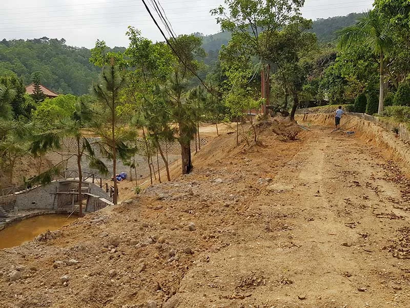 Để xây dựng tòa biệt phủ, khu rừng đã bị san bạt, cày xới để làm các tiểu cảnh. Ảnh: Đỗ Hoàng