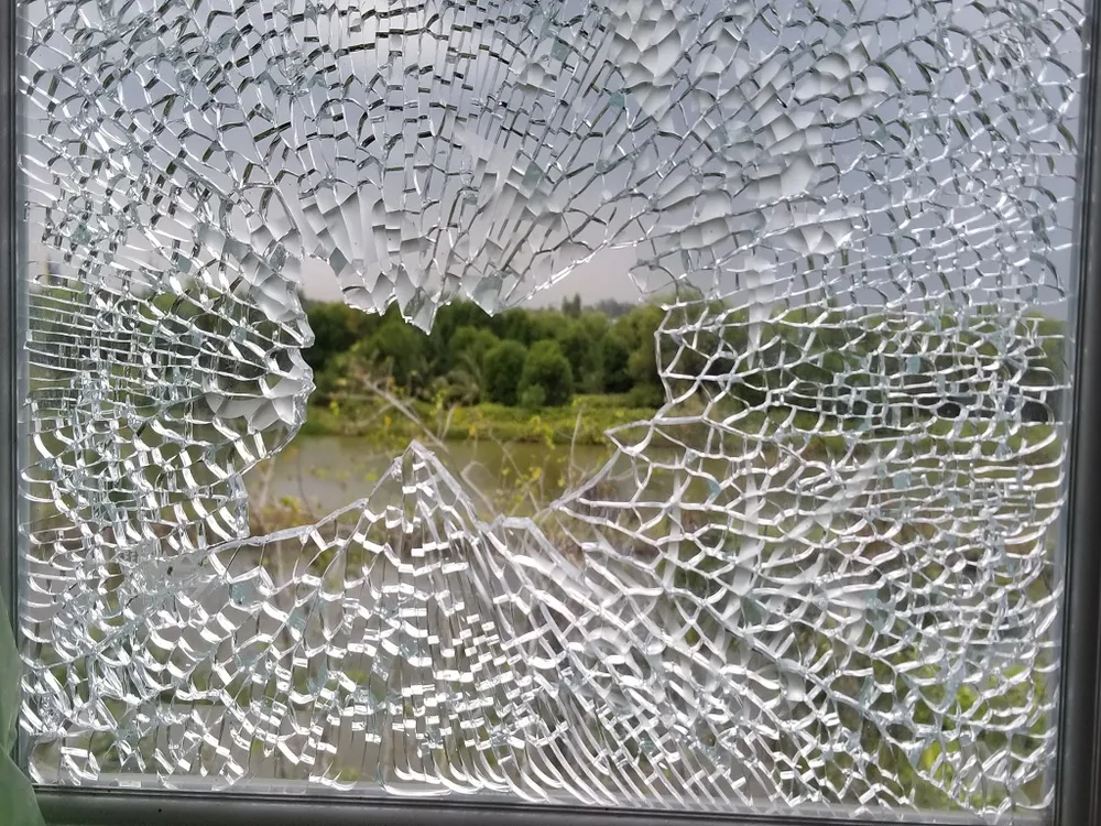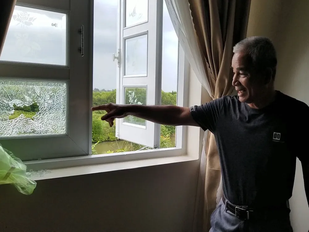 Nhìn ra phía cửa sổ, anh Lâu phát hiện một ô kính bị vỡ kiểu hạt lựu (kính cường lực). Anh nghĩ ai đó bắn chim trúng nên mở cả ba cửa sổ quan sát nhưng không phát hiện gì.