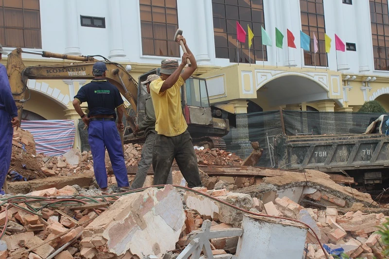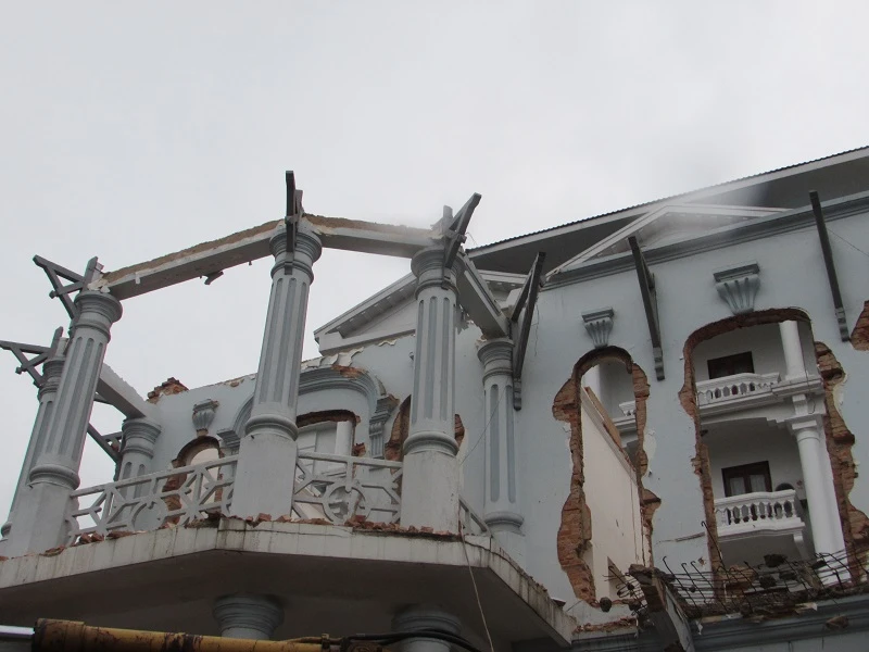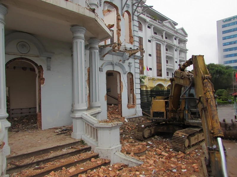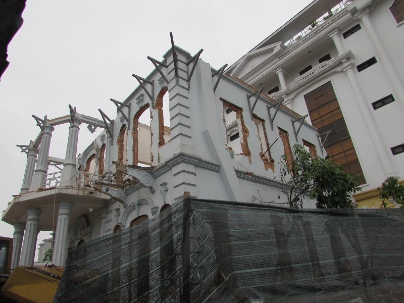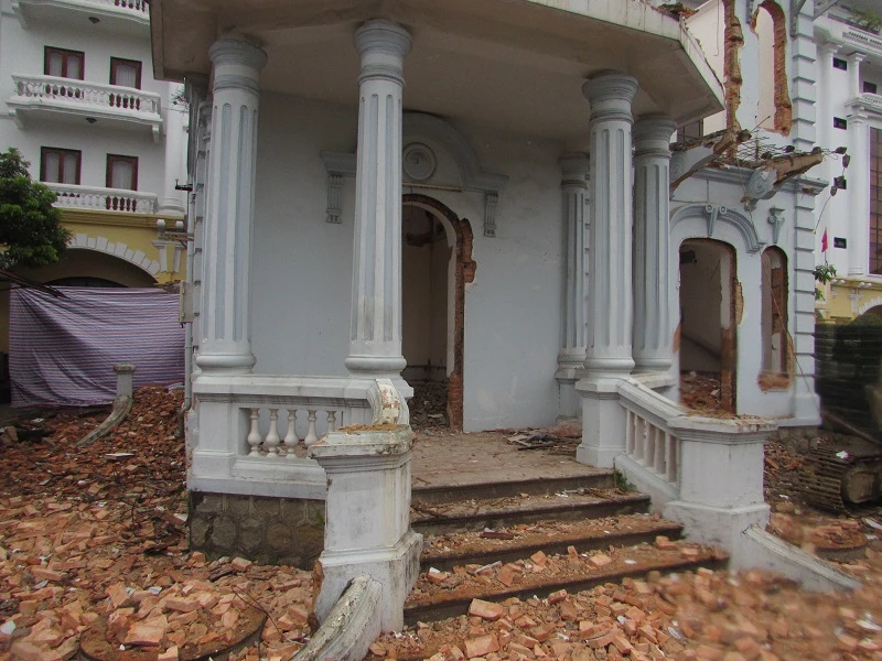 Đến sáng 3-4, việc đập bỏ ngôi biệt thự cổ này đang dần hoàn tất, các công nhân đang đập và dọn dẹp phần móng ngôi biệt thự.