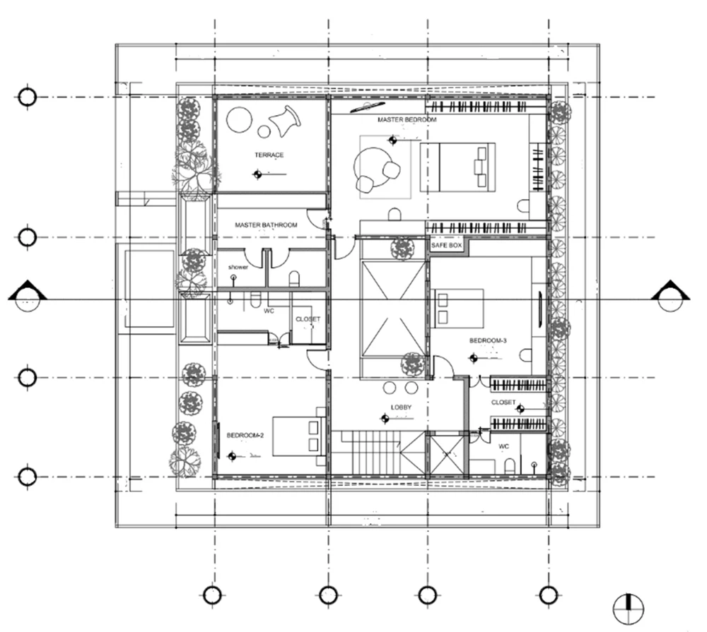 Mỗi không gian phòng ngủ đều kết nối với cây xanh bên ngoài.