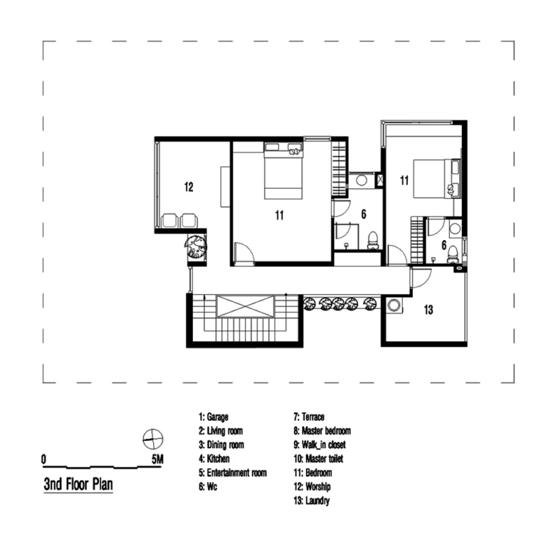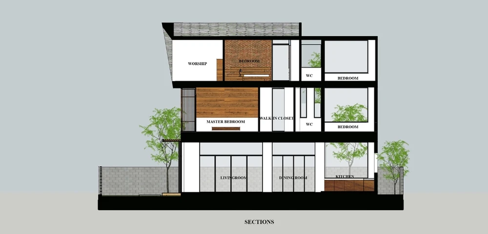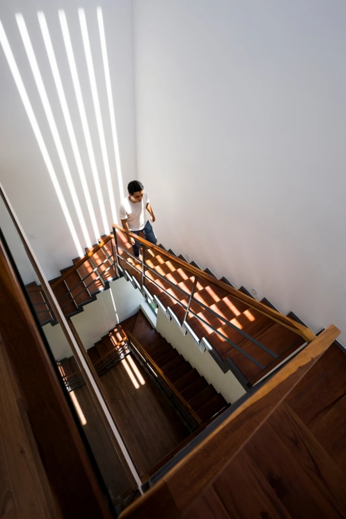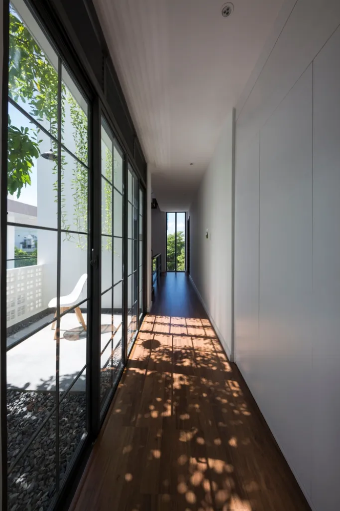 Ngôi nhà gồm một trệt và hai lầu, đảm bảo đủ công năng sử dụng, đồng thời tạo thêm không gian thư giãn xen kẽ khắp nhà.