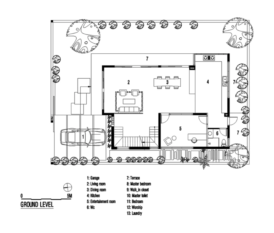 Nội thất sử dụng bên trong đơn giản theo yêu cầu của ngôi nhà. Không quá cầu kỳ, nội thất tầng trệt mang phong cách hiện đại, gọn gàng và được bố trí hợp lý.