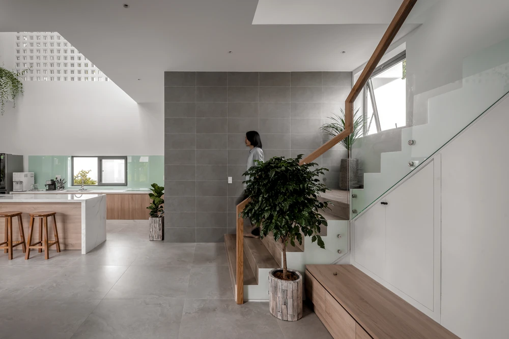 Kiến trúc sư sắp xếp không gian theo tuyến và tổ chức hình khối phối hợp đặc rỗng hợp lý.