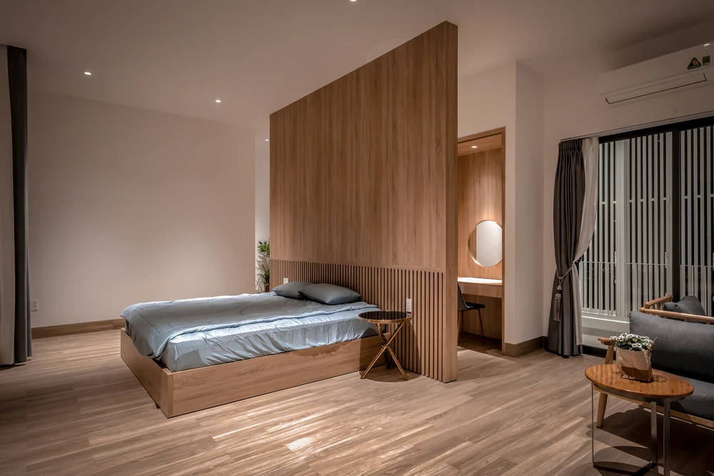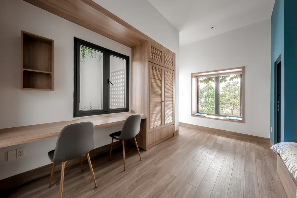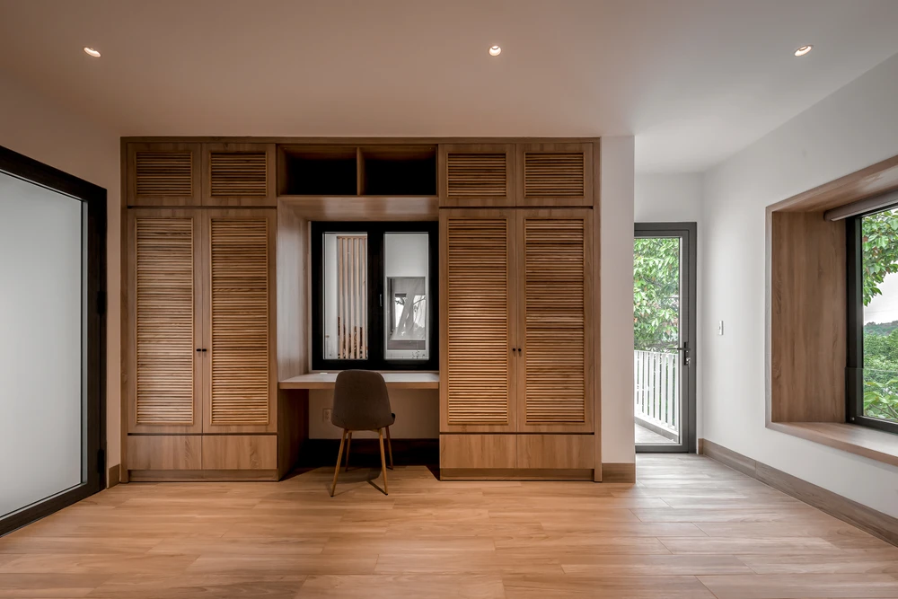 Các thành viên trong gia đình có thể dễ dàng tiếp xúc với thiên nhiên nhờ phòng ngủ có thể mở ra nhiều hướng khác nhau ra bên ngoài.