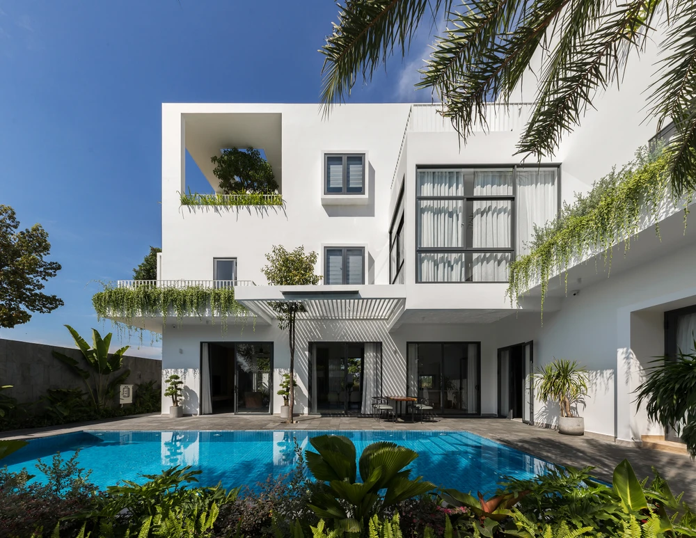 (PLO)- Căn biệt thự màu trắng ở Bình Dương với thiết kế mở và không gian xanh cho gia đình ba thế hệ.