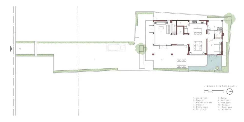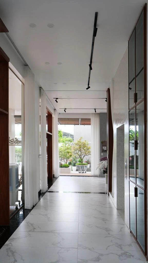 Lối mặt tiền hẹp, kiến trúc sư trồng cây xanh dọc hai lối đi.
