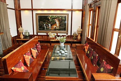 Biệt thự được xây dựng và trang trí hầu hết bằng gỗ xoan nên vô cùng giá trị.