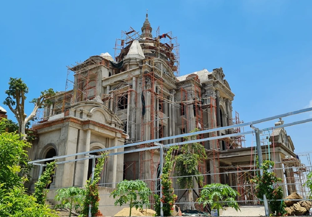 Đến nay, căn biệt thự đồ sộ đã sắp hoàn thiện . Ảnh: VH.