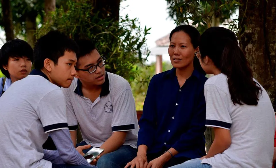 Các em trò chuyện với Sơ tại mái ấm Mai Hòa để hiểu thêm về cuộc sống của các bệnh nhi nơi đây