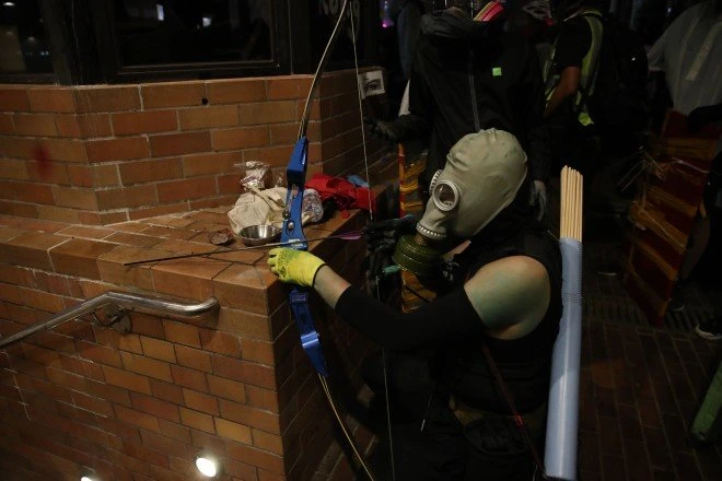 Được biết, nhiều người biểu tình quá khích đã bắt đầu sử dụng cung tên có khả năng gây sát thương cao để chống lại cảnh sát trong bối cảnh nhiều vụ người biểu tình trúng đạn cảnh sát xảy ra gần đây.