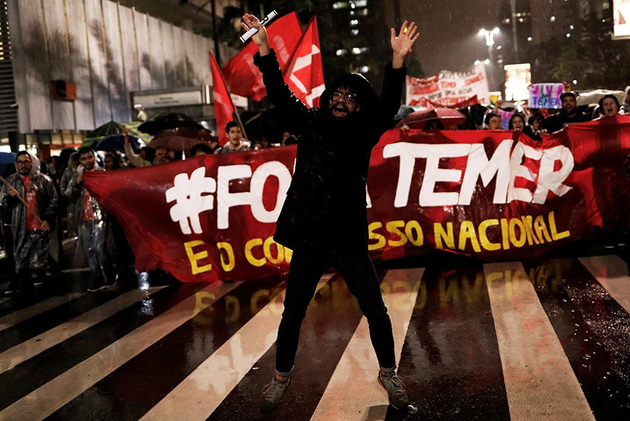 Biểu tình đòi ông Temer nhanh chóng từ chức vì các cáo buộc tham nhũng. Ảnh: AP
