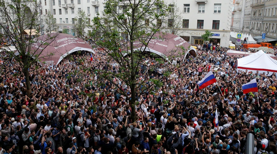 Hàng ngàn người biểu tình xuống đường Tverskaya, thủ đô Moscow hôm 12-6. Ảnh: RT