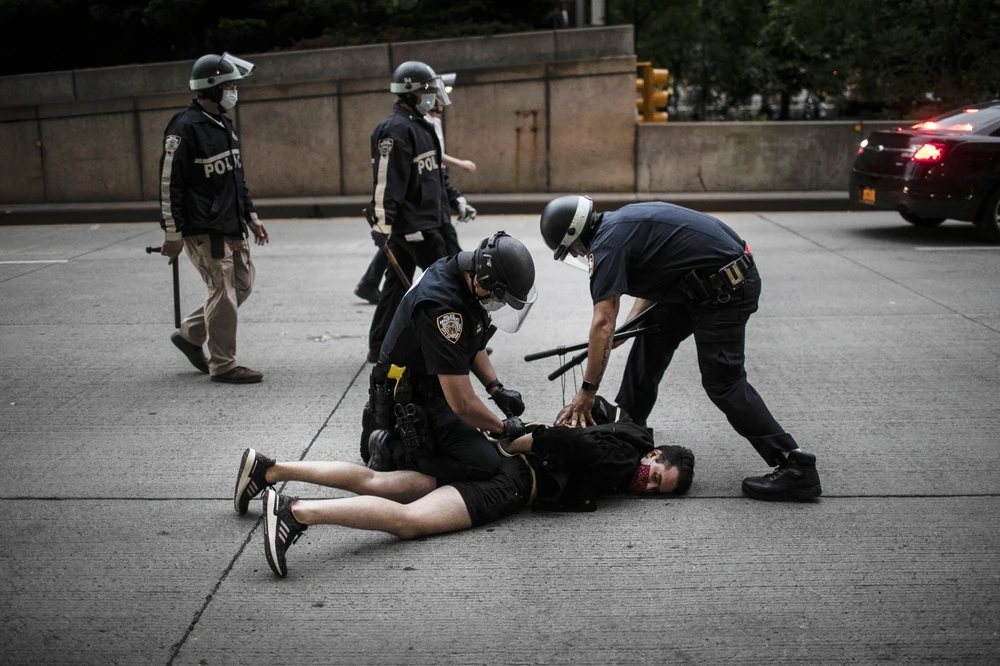 Cảnh sát bắt một người biểu tình vi phạm lệnh giới nghiêm ở New York ngày 2-6. Ảnh: WONG MAYE-E/AP
