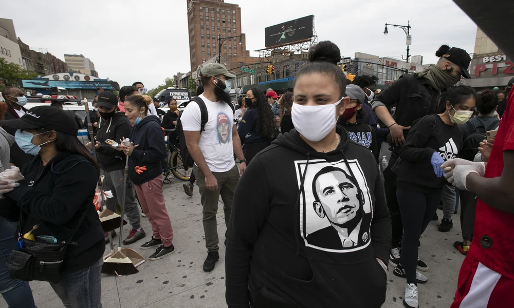 Người biểu tình mặc áo thun in hình cựu Tổng thống Barack Obama tại khu Bronx, TP New York ngày 2-6. Ảnh: MARK LANNIHAN/AP