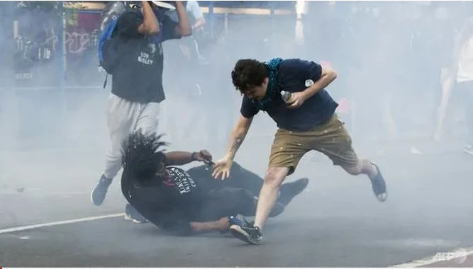 Người biểu tình bị cảnh sát bắn hơi cay gần Nhà Trắng. Ảnh: AFP/ROBERTO SCHMIDT
