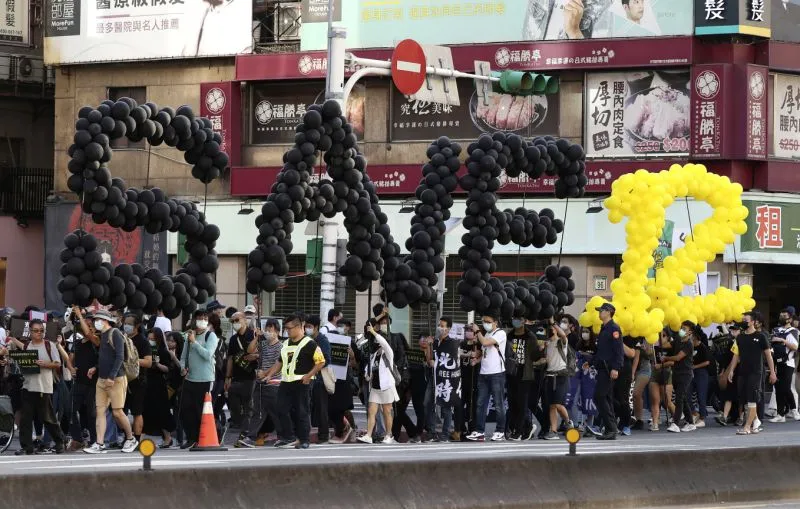 Người biểu tình ở Đài Loan diễu hành yêu cầu Bắc Kinh thả 12 người Hong Kong bị chính quyền Trung Quốc bắt giữ, ngày 25-10. Ảnh: AP