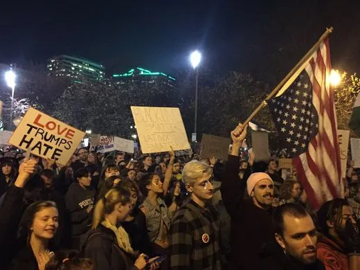 Dân Mỹ tức giận sau kết quả bầu cử tổng thống Mỹ hôm 8-11 với phần thắng nghiêng về tỉ phú Donald Trump bất chấp cựu ứng viên đảng Dân chủ Hillary Clinton và Tổng thống Obama kêu gọi kiềm chế và hòa giải. Tân Tổng thống Donald Trump cùng một số người ủng hộ ông đã bị chỉ trích nặng nề trong suốt chiến dịch tranh cử bởi những phát ngôn bạo miệng, gây sốc cùng hàng loạt bê bối bị phanh phui.