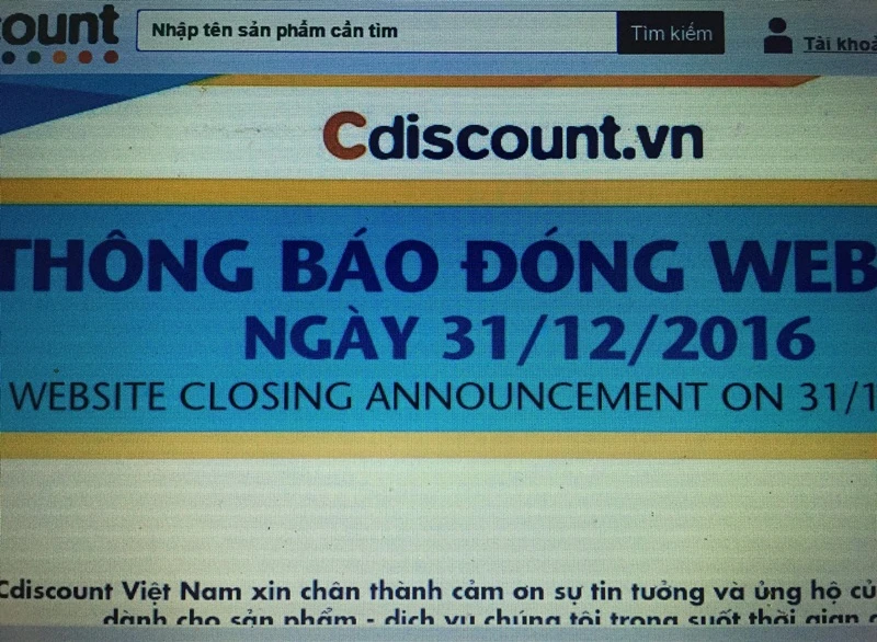 Trang thương mại điện tử Cdiscount.vn thông báo sẽ đóng cửa từ ngày 31-12-2016.