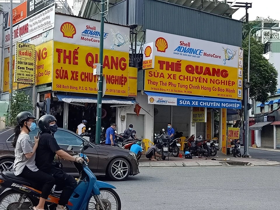 Trong khi đó, trên đường Hoàng Văn Thụ, quận Tân Bình dù chỉ mới sáng 1-10 nhưng rất nhiều săm lốp được thay. Cửa tiệm cũng gọi người tới bán các săm, lốp cũ tồn dư trước giãn cách và sau giãn cách. Ảnh: Thu Hà
