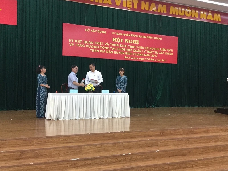 Đây là mục tiêu phấn đấu trong kế hoạch liên tịch về việc tăng cường công tác phối hợp quản lý trật tự xây dựng trên địa bàn huyện Bình Chánh. Lễ ký kết giữa Sở Xây dựng TP.HCM và UBND huyện Bình Chánh diễn ra vào chiều nay, 16-3.