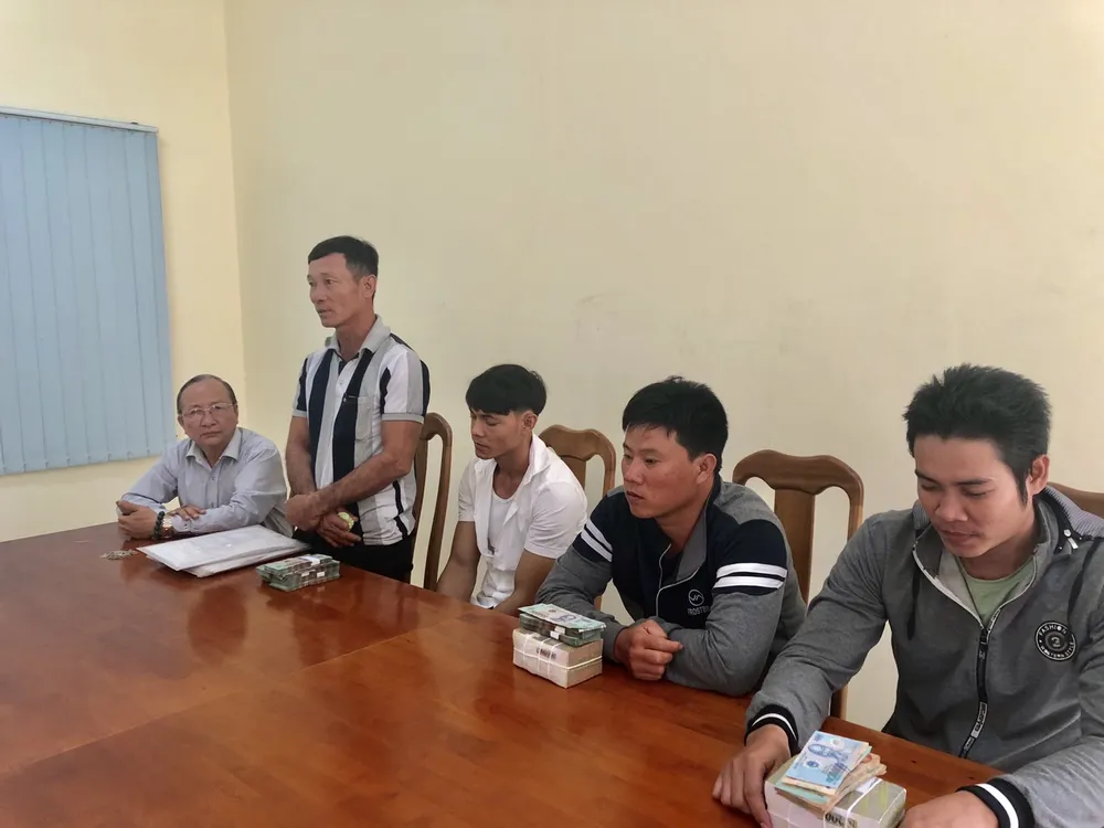 Từ phải qua: Sệt, Sỹ, Uống. Trong đó Sỹ là người chấp nhận bản án sơ thẩm kết án một năm bảy tháng chín ngày tù nhưng cơ quan chức năng xác định anh bị oan dù anh không kháng cáo kêu oan.