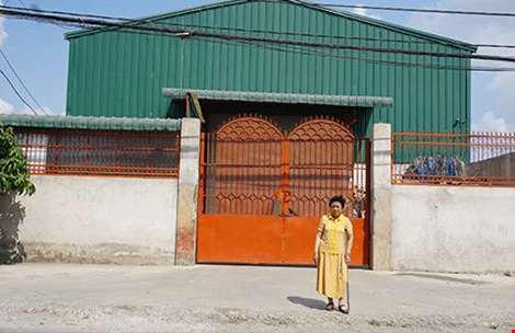 Bà Trần Thị Huệ trước công trình nhà xưởng sai phép. Ảnh: N.NGA