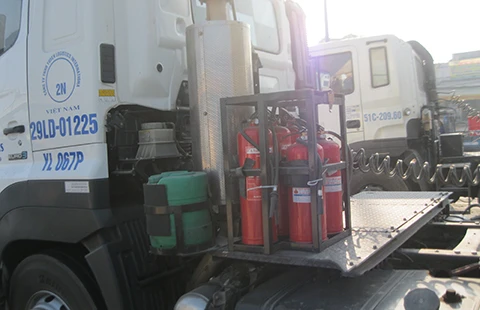 Trang bị bình chữa cháy trên xe chuyên dụng. Ảnh: KIÊM HẠ