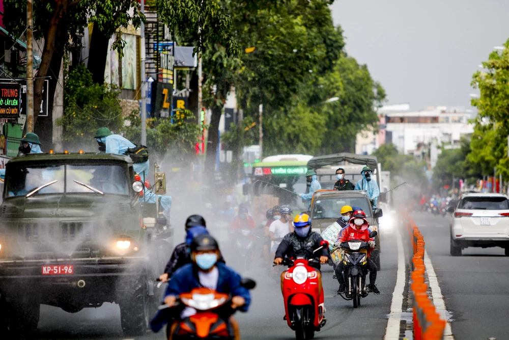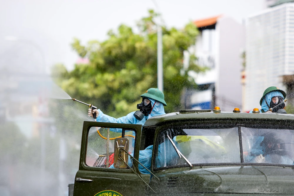Chiều 1-6 và ngày 2-6, Tiểu đoàn Phòng hóa 38, Quân khu 7 và Tiểu đoàn 907, Lữ đoàn Phòng hóa 87, Binh chủng Hóa học, Bộ Quốc phòng đã phối hợp, tổ chức nhiều xe chuyên dụng phun khử khuẩn các tuyến đường trên địa bàn quận Gò Vấp, quận 12 và Hóc Môn.
