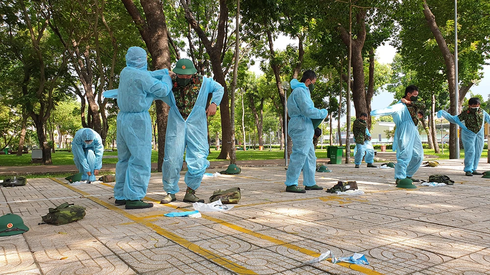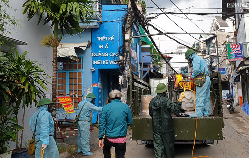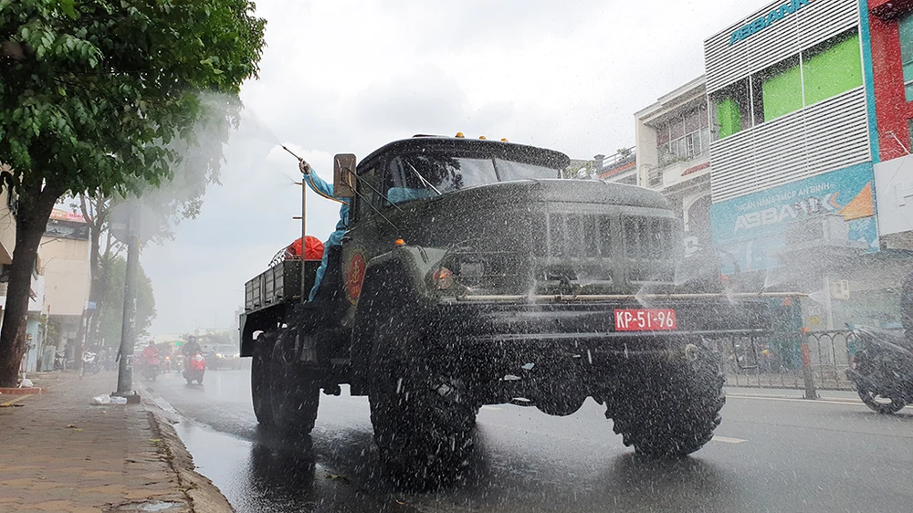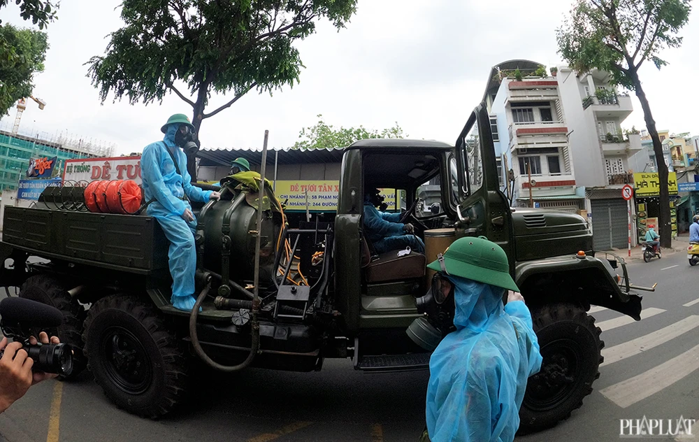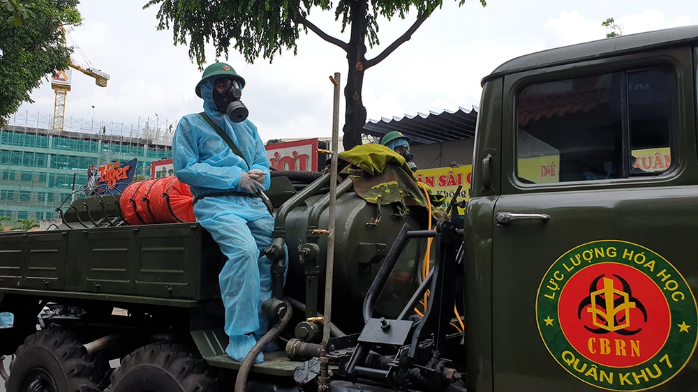 Trung tâm ứng cứu sự cố hóa học, sinh học, phóng xạ hạt nhân thuộc Binh chủng Hóa học chia làm 3 đoàn để phun khử trùng tiêu độc 12 khu vực và tuyến đường gồm: cầu vượt công viên Gia Định, đường Nguyễn Thái Sơn, toàn bộ phường 15, đường Nguyễn Văn Công,...