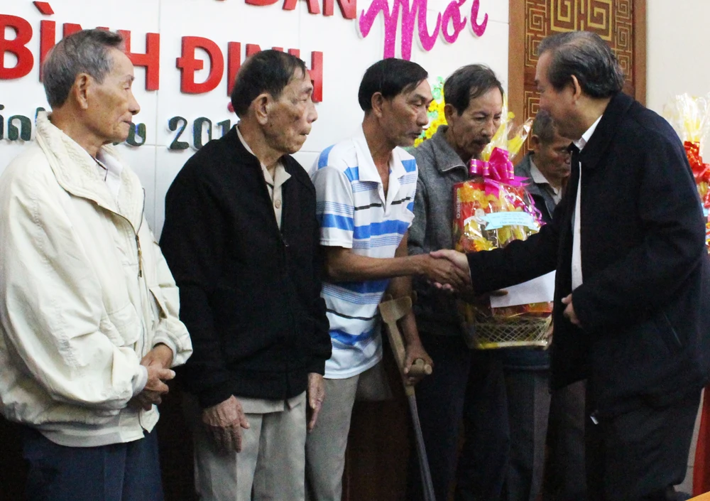 Phó Thủ tướng Trương Hòa Bình tặng quà tết, động viên người dân tỉnh Bình Định. Ảnh: TẤN LỘC