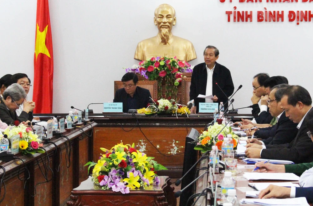 Phó Thủ tướng Trương Hòa Bình phát biểu chỉ đạo tại cuộc làm việc với lãnh đạo chủ chốt tỉnh Bình Định. Ảnh: TẤN LỘC