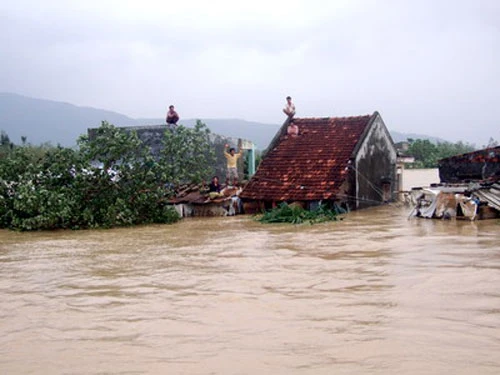 Lũ ở Bình Định dâng lên nóc nhà. Ảnh: Báo Bình Định