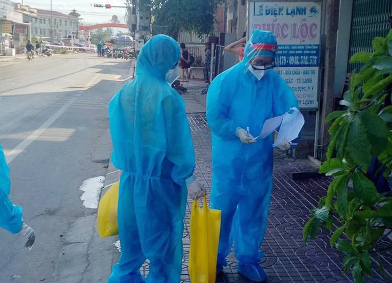 Lực lượng chức năng điều tra dịch tễ ở thị xã Hoài Nhơn. Ảnh: LÊ HOÀNG THI