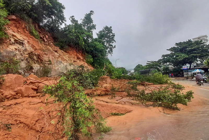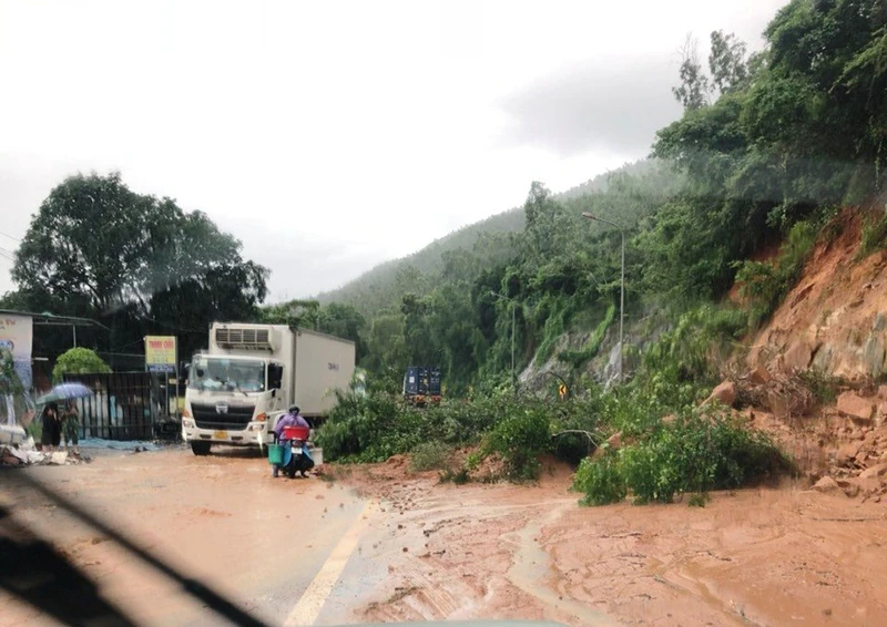 Sáng cùng ngày, nhiều khối đất đá trên núi Vũng Chua ven quốc lộ 1D đổ xuống mặt đường trong khi nhiều phương tiện đang lưu thông. Nhiều khối đất đá cùng cây cối từ trên núi theo nước mưa đổ ập xuống, chắn phần lớn mặt đường, khiến việc lưu thông rất khó khăn.