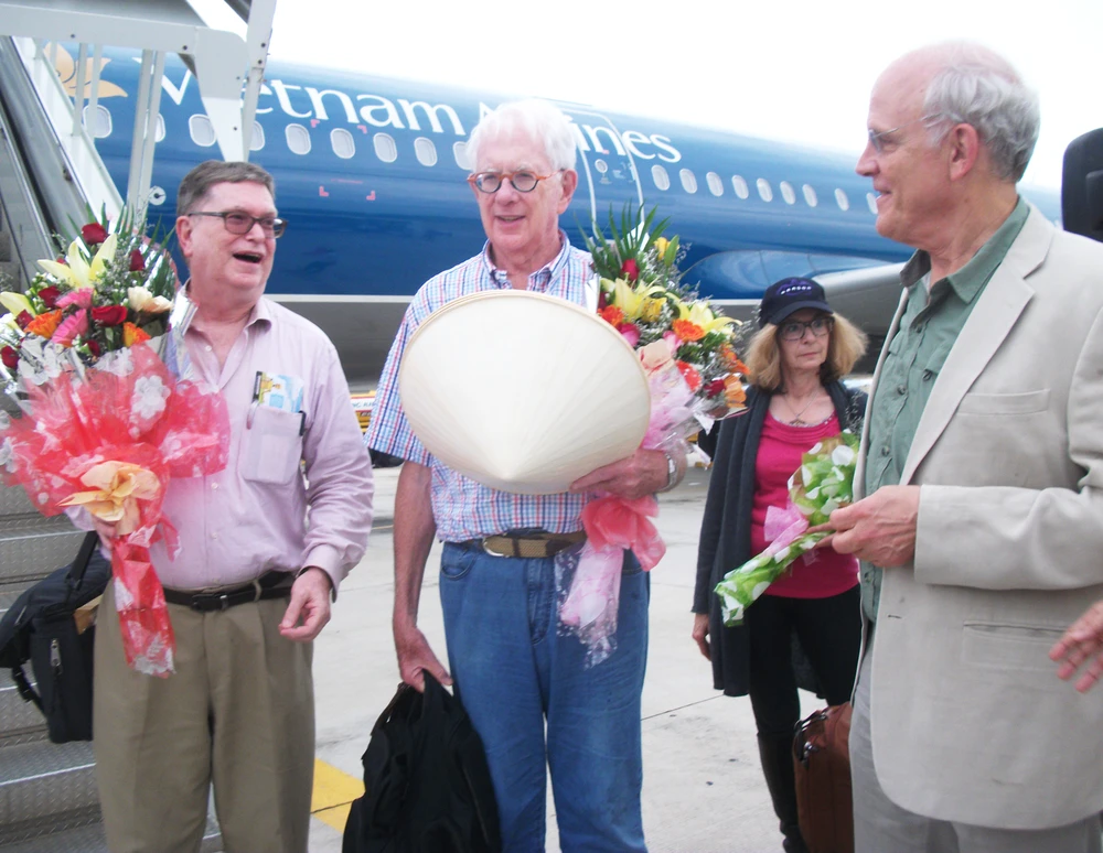 Các nhà bác học Vật lý đoạt giải Nobel đến Bình Định qua cảng hàng không Phù Cát. Ảnh: TẤN LỘC