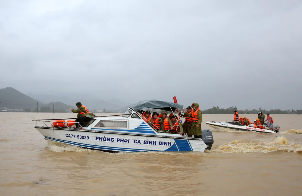 Phó Thủ tướng Trịnh Đình Dũng thị sát vùng lũ Bình Định. Ảnh: XT