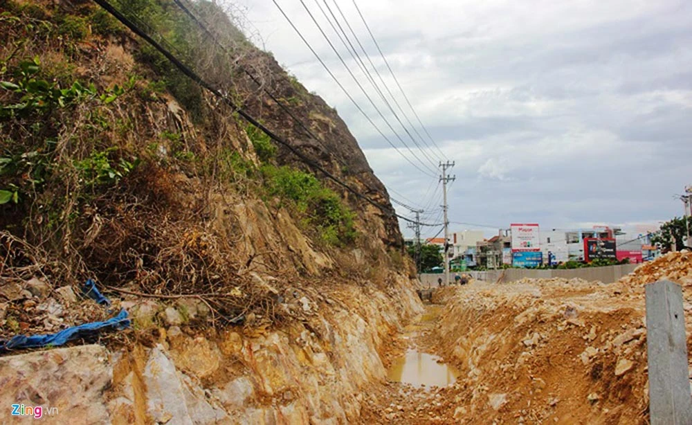 Đào đất thăm dò khu vực dự kiến làm phù điêu. Ảnh: NO