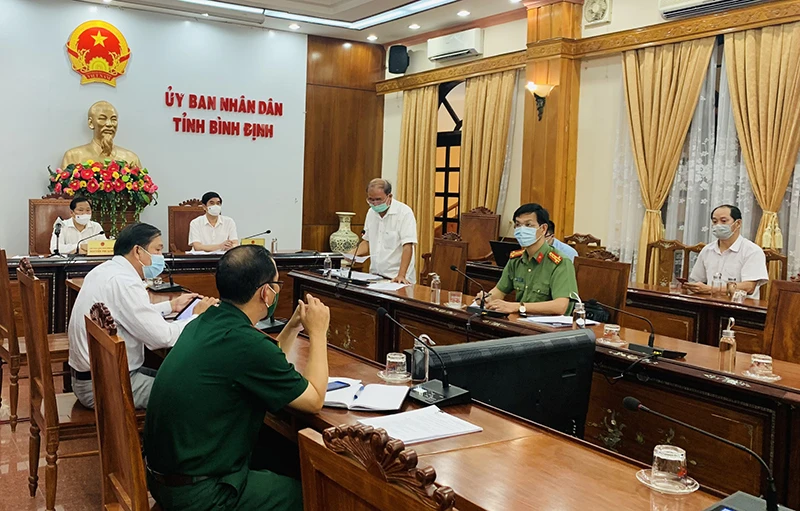 Ban Chỉ đạo phòng chống dịch COVID-19 tỉnh Bình Định họp sáng 3-7. Ảnh: TM