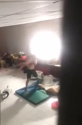 Trong clip, Nam liên tục đấm đá, lấy chân dẵm lên người bé, chưa dừng lại người này còn đưa bé A. lên cao rồi ném xuống nền nhà, nhưng may có tấm nệm đỡ nên bé trai không sao.