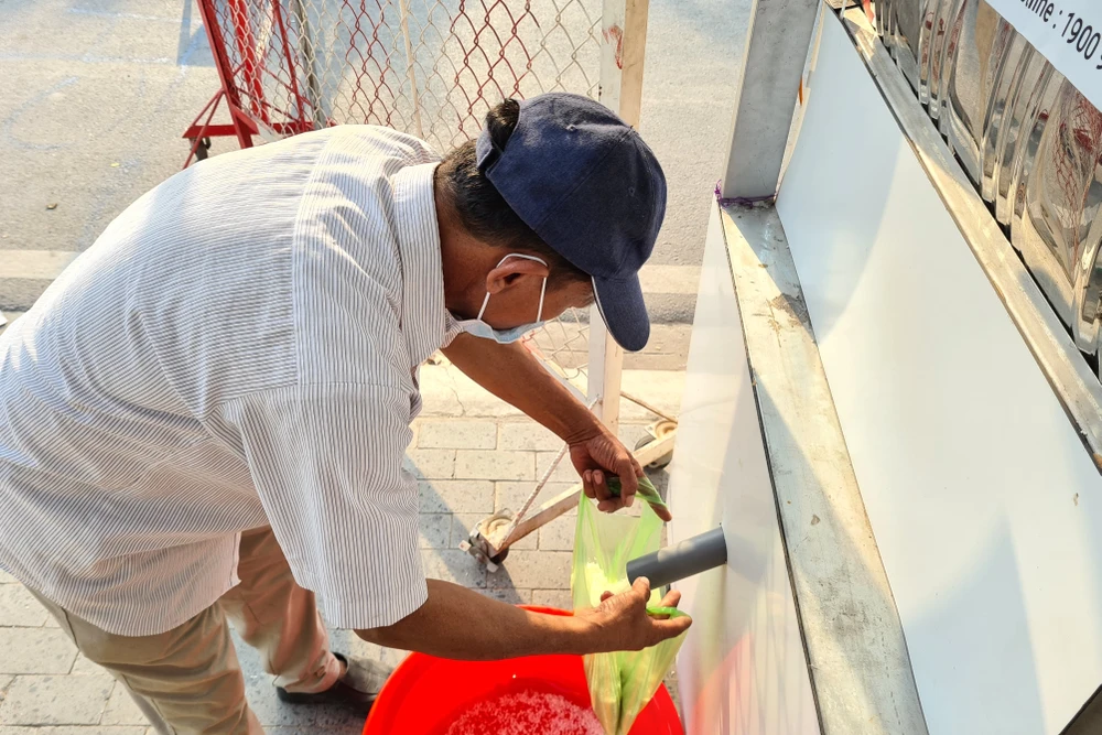 Gạo liên tục được đổ vào máy ATM. Ảnh: LÊ ÁNH