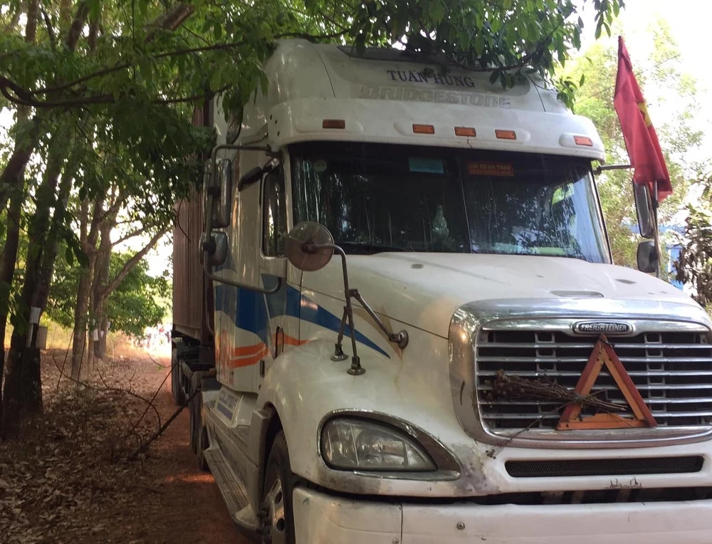 Khi đó, ông N.B.P (60 tuổi, quê Vĩnh Long) cùng đồng nghiệp đi tuần tra trên đường trong khu đô thị công nghiệp Mỹ Phước. Ông P phát hiện một xe container tông trúng cây xanh bên đường thuộc tài sản ông đang bảo vệ.