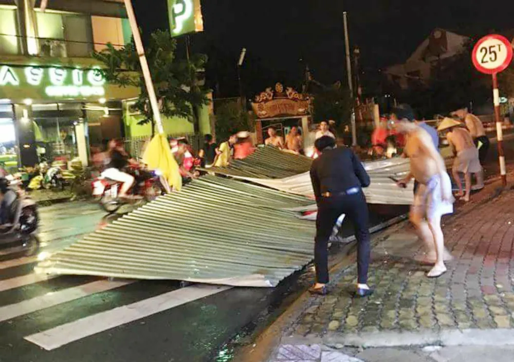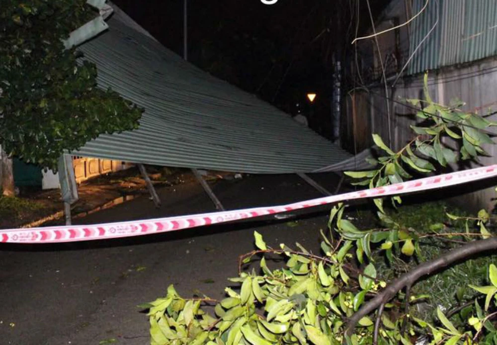 Nhiều tấm tôn nhà dân đổ xuống đường.