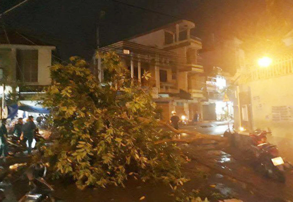 Nhiều cây bị đổ gẫy trong cơn mua kèm gió lốc.